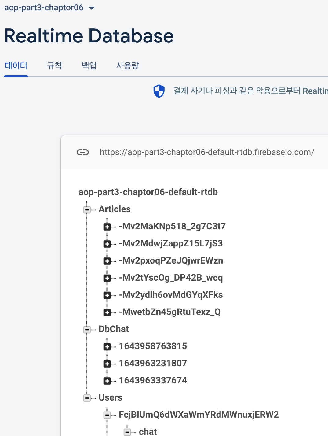articleDB = Firebase.database.reference.child(DB_ARTICLES) // Articles라는 database.reference의 최상위에 바로 아래있는 userDB를 Articles를 가져온것,