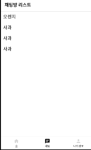 2) ChatFragment에는 채팅방 리스트를 Fragment형식으로 넣어주고 아래와 같이 특정 아이템의 채팅방을 클릭하면 채팅한 목록이 뜰 수 있다.