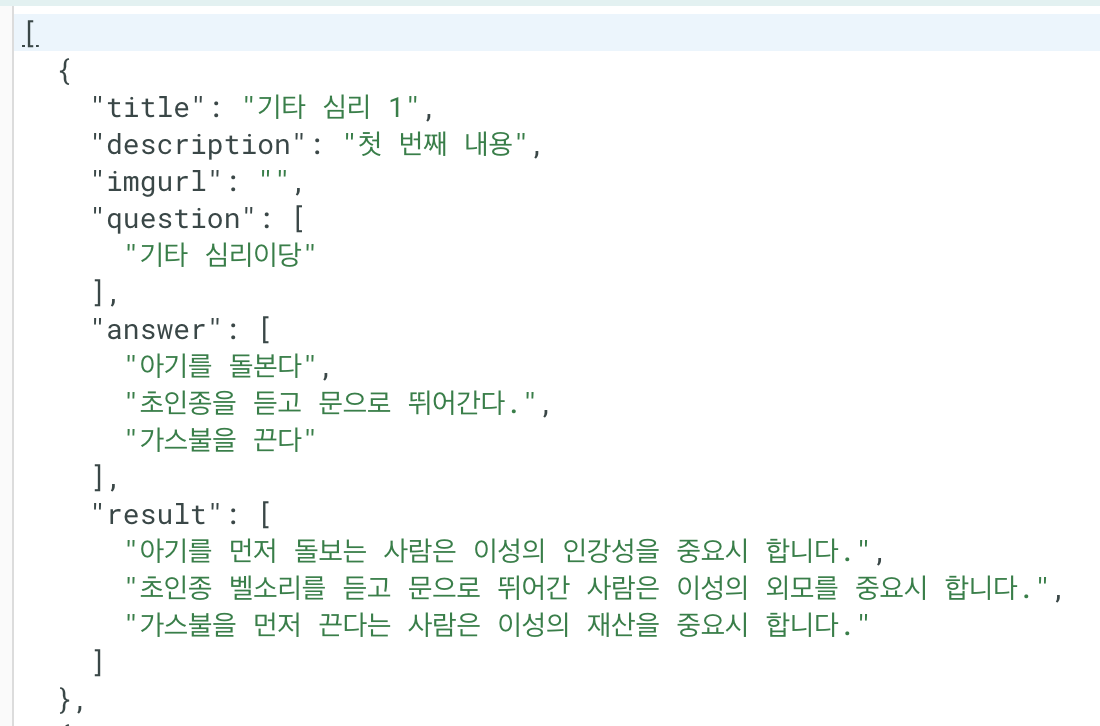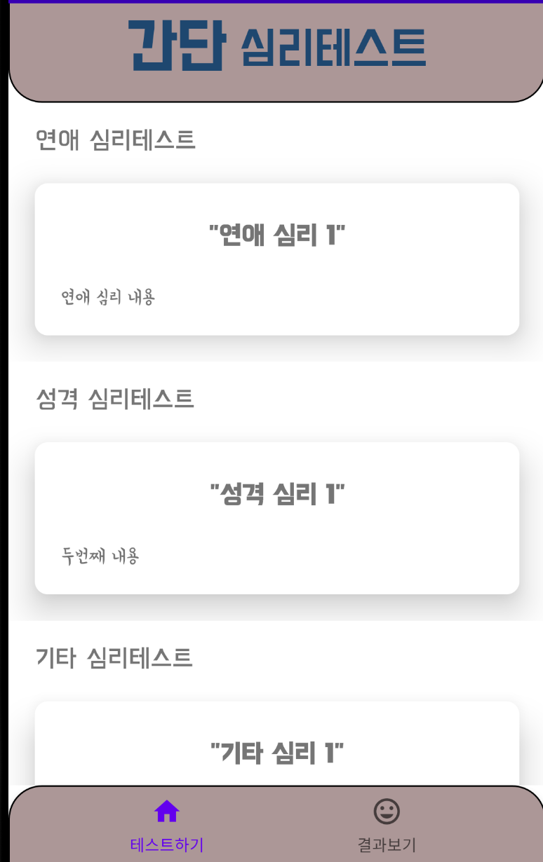 안드로이드 앱 출시 목표로 심리테스트를 할 수 있는 앱을 초기 부분을 구현해 보았다.