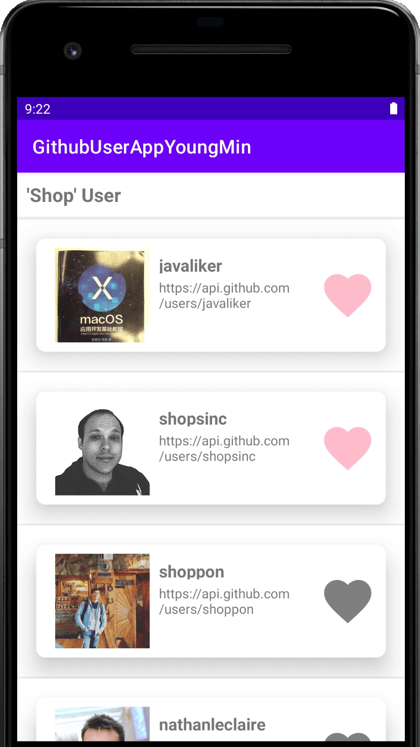 https://api.github.com/search/users?q=shop - 이 곳에 있는 sample Api를 Call하는 작업을 진행,