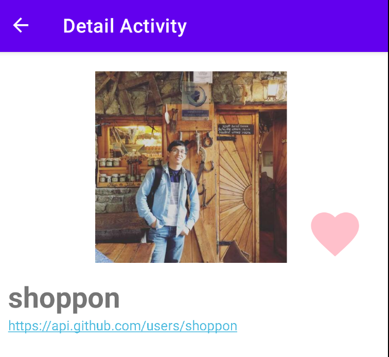 우측 하트 버튼을 누르면 LiveData로 연동된 DB값이 변경 되므로 MainActivity의 하트의 색상 또한 바뀌게 된다. viewmodel로 작동 시킨 동작이기 때문에 화면 회전시에도 변동 없이 유지되고 있다. 그리고 하단부 URL Link를 클릭시 webview 형태로 아래의 명령어를 통해 이동 가능하게 해주었다.