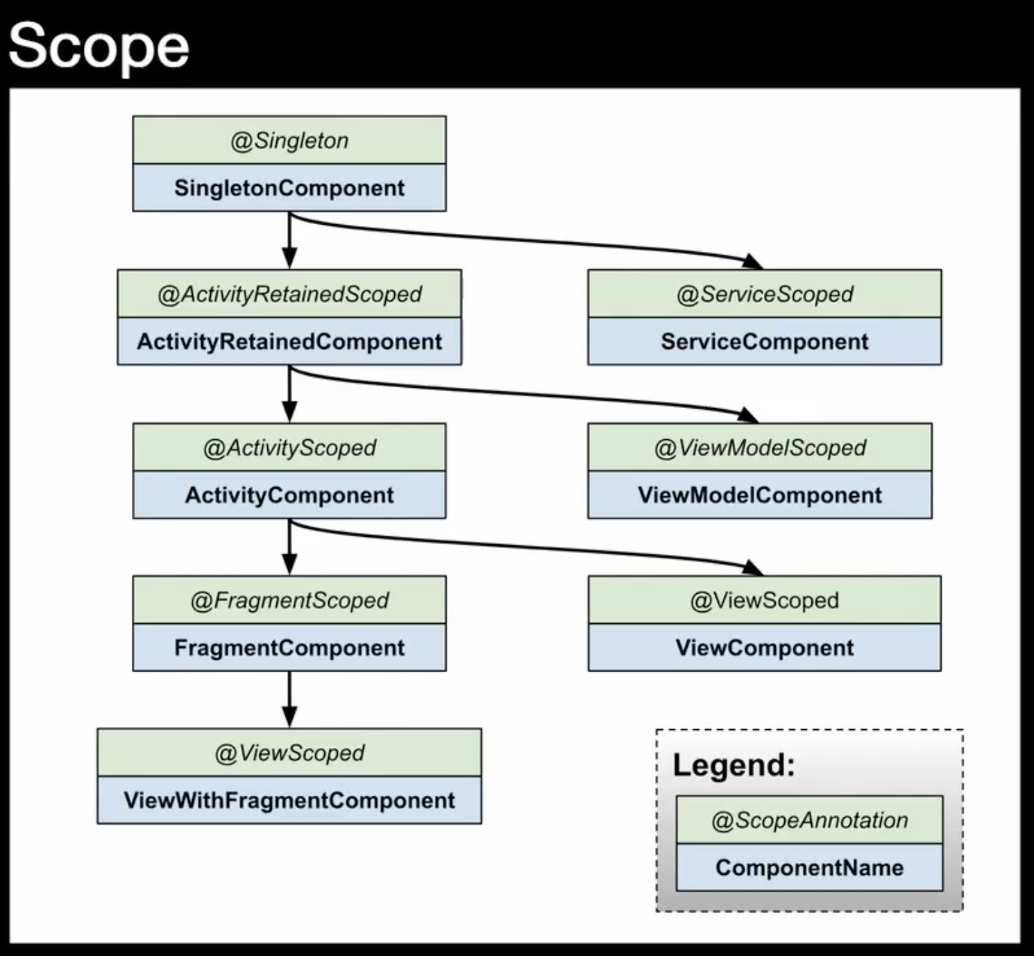 2) @InstallIn(ActivityComponent::class) 를 붙임으로서 ActivityComponent 안에 설치되면서 Scope가 ActivityScope로 설정된다.