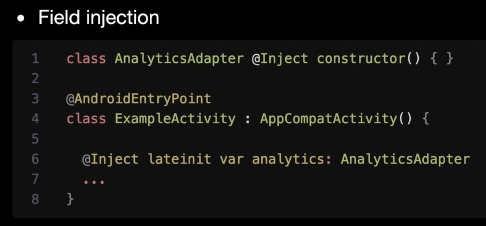 @AndoidEntryPoint를 붙이는 것은 Component를 만드는 과정 Component에서 Component로 의존성 주입 및 받기 가능, 주입 받을 Class에 AndroidEntryPoint 붙인다