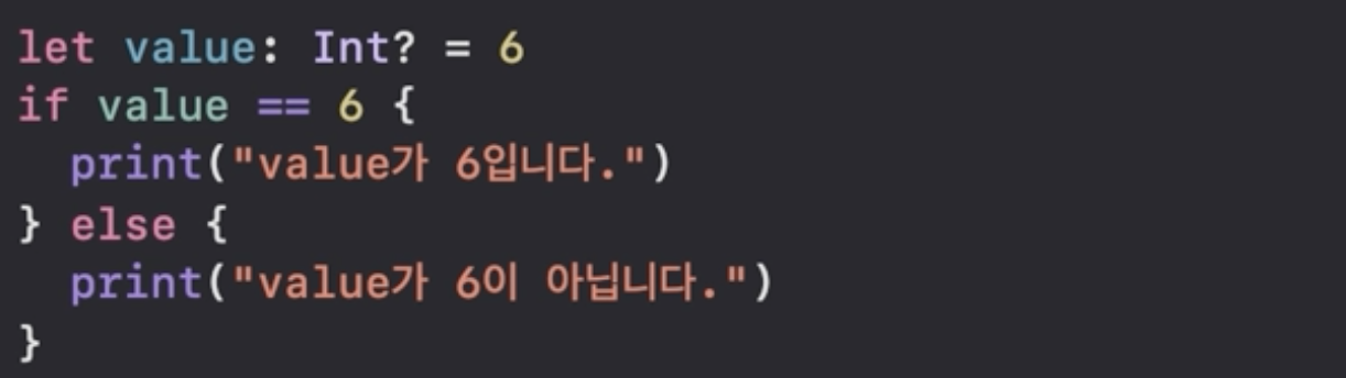 여기서 value가 6입니다 출력 된다. 그 이유는 컴파일러에 의해 옵셔널이 자동적으로 해제 된다