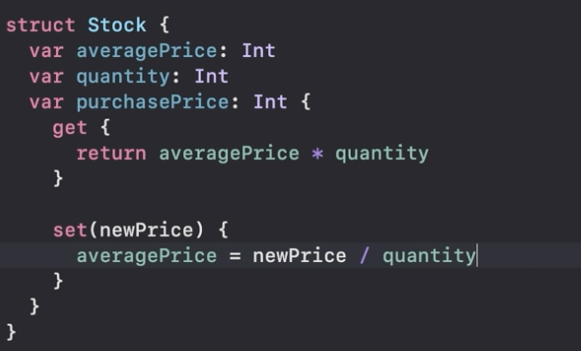 - 읽기 전용 연산 프로퍼티는 가능하나, 쓰기 전용 연산 프로퍼티는 불가능