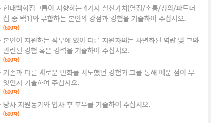 그래서 하나의 항목당 한가지의 역량만을 어필하고, 나머지 글을 이러한 역량에 대한 근거를 구체적으로 제시하는 형태로